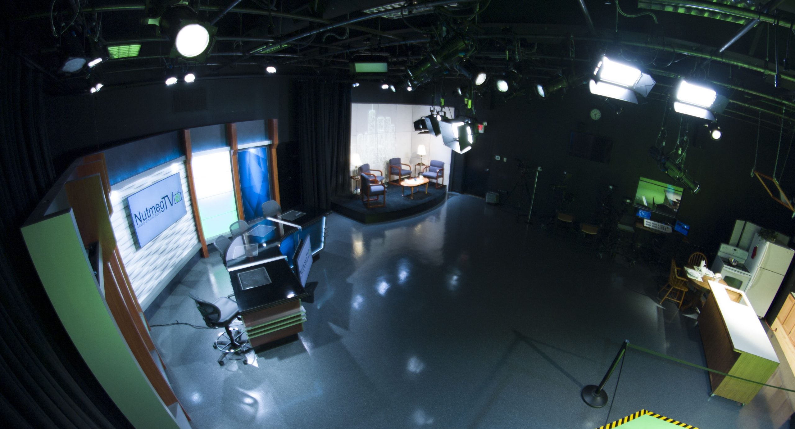 Whether shooting on location or using our 1,400 square feet of studio space including a brand new, cutting-edge newsroom set up or green screen hardscape, Nutmeg TV has the facilities, equipment and expert staff to help you get your content created. From professional lighting, cameras and sound equipment to a functioning kitchen, podcast or lifestyle living set, we have the studios and production staff available to get the job done.